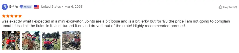 Vår grävmaskinsfabrik tillverkar olika minigrävmaskiner, såsom 0.8T, 1T, 1.2T, 1.3T, 1.5T, 1.6T, 1.8T, 2T, 2.2T, 2.5T, 3T, 3.5T och 4T liten grävmaskin etc.